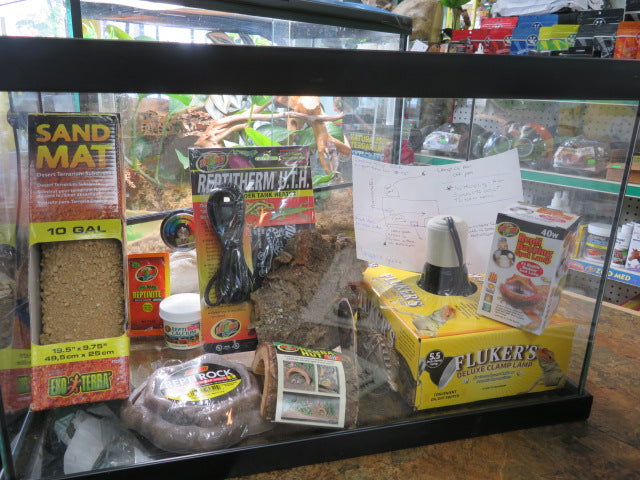 Leopard Gecko kit with everything you need for your Leopard Gecko. This 10 gallon terrarium kit takes the guess work out of setting up the proper habitat.