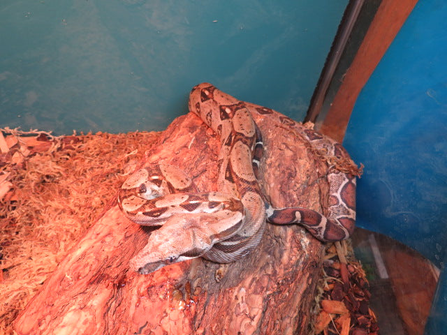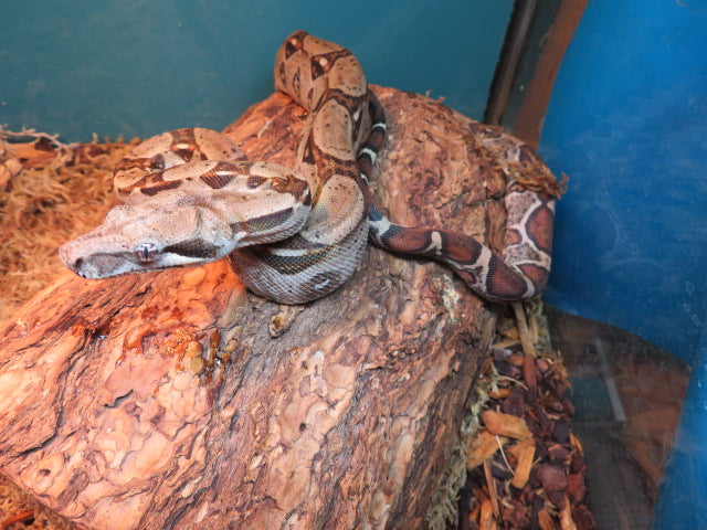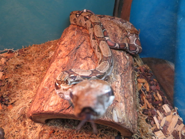 This poor guy was found in the freezing cold inside a rental car. One of our customers was called to action and thought the best place for it to recover is with us. It eats well on defrosted mice, handles well... we have its shedding problems worked out. It deserves a long-term loving home of it's own now :)