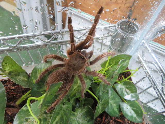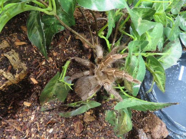 Beautiful Stripe Knee Tarantula comes with a 16" x 8" x 8" decorated enclosure as shown in the picture. Local pick up only